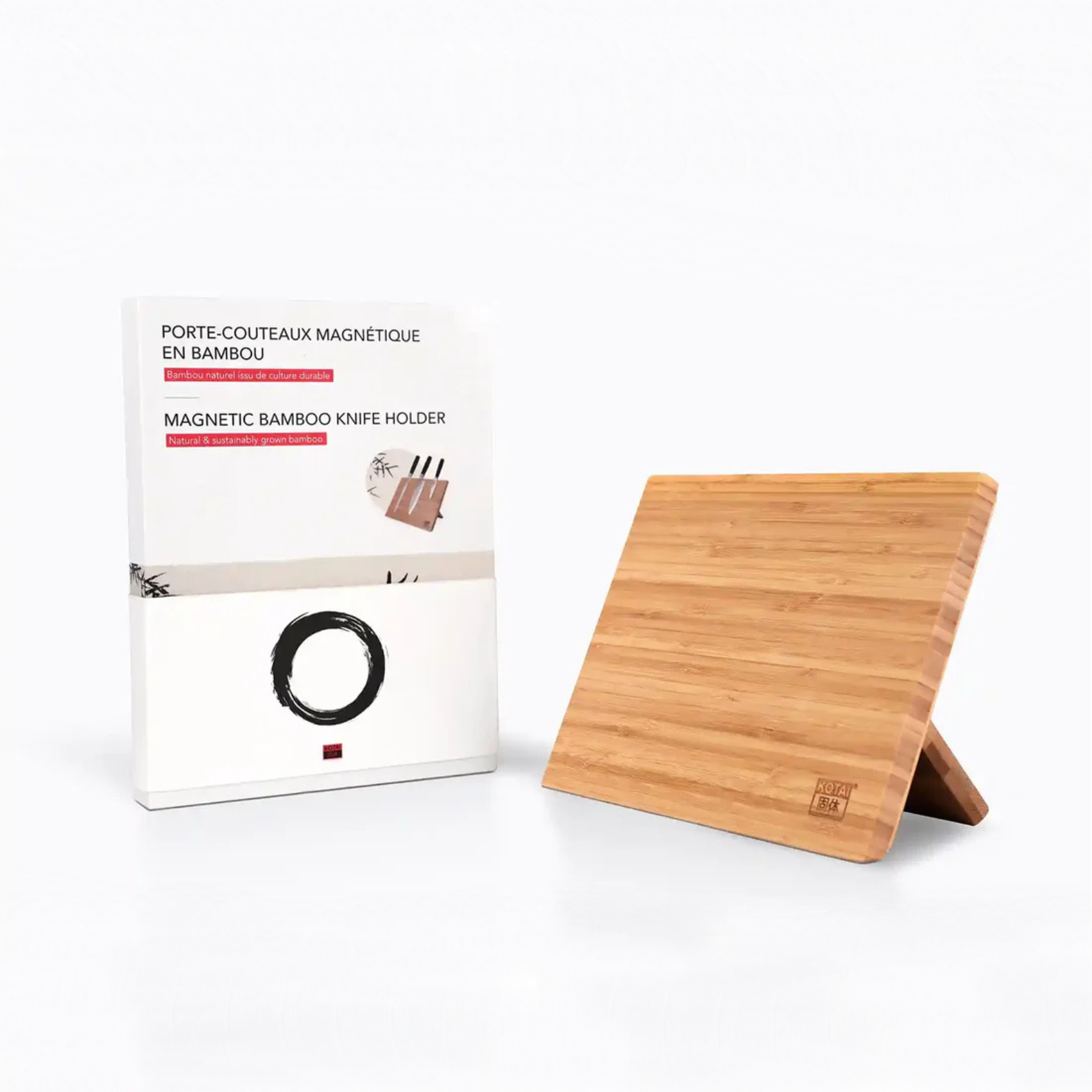 Fabricado con bambú natural cultivado de manera sostenible, este portacuchillos cuenta con un potente imán oculto que mantiene tus cuchillos firmemente en su lugar sin rayar las hojas. Su superficie suave y barnizada asegura un almacenamiento seguro y libre de arañazos.